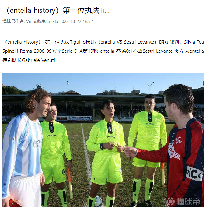 球队的没落甚至也导致了利古里亚十分火爆的Tigullio德比的一度绝迹。Tigullio德比是指维尔图斯恩泰拉与塞斯特里莱万特之间的比赛。(另一位懂球帝作者@Virtus蓝魔Entella曾经介绍过,下面的配图也是那条消息的截屏)