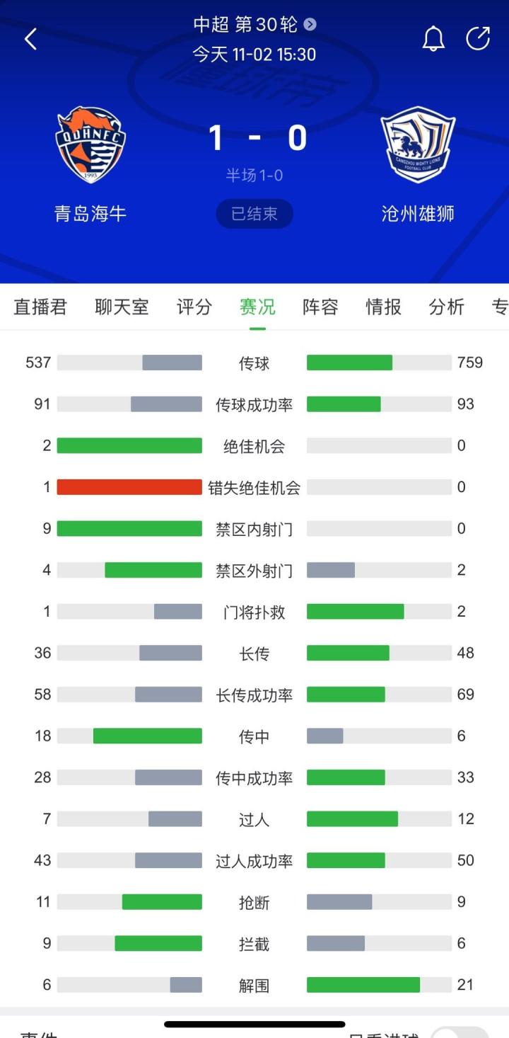 两队近1300脚传球,海牛vs沧州现场有球迷睡着了JayStones2024-11-02 17:42在今天下午进行的中超第30轮比赛中,青岛海牛主场1-0击败沧州雄狮,两队携手保级。下半场,当时梅州客家1-2落后山东泰山,青岛海牛1-0领先沧州雄狮,按照当时形势,青岛海牛和沧州雄狮都能保级。之后,这场比赛处于缓慢的节奏,两队全场比赛有将近1300脚传球(其他场次普遍800-900脚),直播画面可以看到,看台上有球迷困得睡着了。展开更多