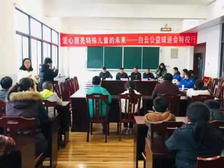 此行南通支云与白云公益球会为学校赠送了2019赛季支云套票,并为15名特困学生送上了爱心款。随后,总经理李毅致辞,他表示:“本次活动以新时代中国特色社会主义思想为指导,落实‘全面建设小康社会,残疾人士一个也不能少’的重要指示精神,增强残疾儿童的获得感与幸福感。2019年南通支云将怀揣800万南通人的梦想继续努力,并寄语全校师生:爱祖国、爱南通、爱运动、爱支云。”