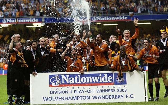 2003年,狼队联赛排名第五,第四次获得附加赛资格。这次狼队没有倒在半决赛,两回合总比分3-1击败雷丁,并在决赛3-0击败谢菲尔德联队,成功升入英超!可惜进入英超后表现不佳,仅仅一个赛季便宣告降级。