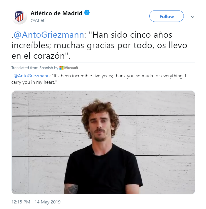 ▲马竞5月14日确定格里兹曼将于赛季结束后离队。