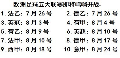 随着美洲杯和非洲杯等国家队比赛纷纷结束,国际冠军杯激战正酣,令彩民朋友们等待许久的欧洲五大联赛和次级联赛终于要大幕拉开,下面我来介绍一下每个联赛的开始时间。