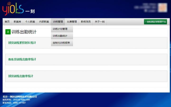 在足球青训机构的发展规划中,需要有明晰的自我认知并且要渐进式发展,针对出现的问题逐个解决。以一刻足球俱乐部专业足球训练与比赛管理系统为例,针对足球俱乐部及青训机构的训练、管理、考核等需求,实现标准化教学,落实教练员日常行为管理,呈送球员成长报告,提升行业机构、职业俱乐部及社会足球青训机构的整体管理水平。