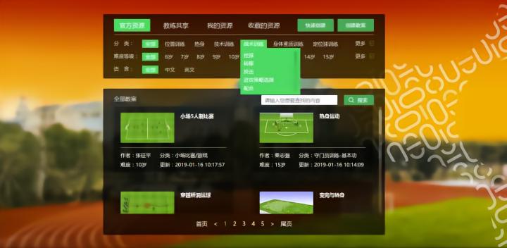 系统中含有数十万套世界级教练针对不同级别、年龄段、技战术、场上位置、能力缺陷而设计的3D、视频训练教案。可以根据实际情况筛选和创建适合自己的教案,定制具有俱乐部特色的教学体系。