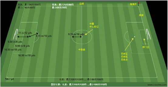 • 球门柱:白色,与底线宽度相同,其宽度与厚度不超过 12厘米;