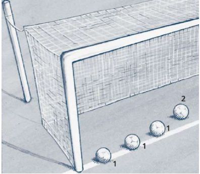 球放在罚球点。除发点球的球员外,其他球员站在罚球区外、球场内,且距离罚球点至少 9.15 米。守门员在球门区站好位(其他球员也站在符合要求的地方),裁判鸣笛示意罚点球。