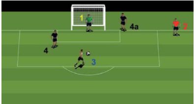 位置分布: 1 守门员 2 对方守门员 3 罚球点球者 4 裁判 4a 助理裁判