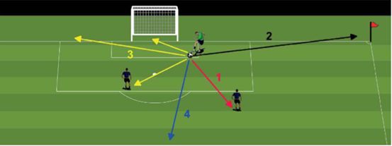 1正确的动作 2角球 3重新踢 4守门员可直接射门得分