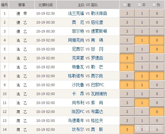 上一次给大家推荐的胜负彩第19137期任九是非常可惜的只命中了八场,不过加上此前推荐的胜负彩第19135期顺利命中任九,可以说最近2次推荐的胜负彩任九场次,一共是18中17,给大家提供了很好的参考。今天我们继续胜负彩第19138期,由于今天的胜负彩是以法乙、荷乙赛事为主,这无疑大大增加了竞猜的难度,但相信最终的奖金也会水涨船高,因此大家可以选择适当的加大一下资金的投入。
