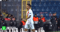 比赛进行到第54分钟时,洛伦佐-佩莱格里尼在主罚角球前被主队球迷扔出的硬币击中头部。走出场外接受治疗时,我们可以看到洛伦佐-佩莱格里尼的球衣已经被鲜血染红。