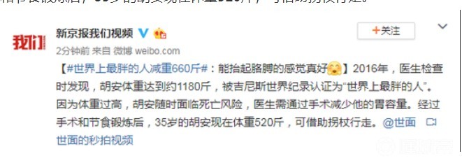 据英国每日邮报报道,35岁的墨西哥男子胡安·佩德罗·佛朗哥(Juan Pedro Franco)在2017年时以1132磅(约595公斤)的体重正式被评为“世界上最重的人”,在三年内,他经过手术、节食等治疗手段,从约1190斤减重到520斤,现在可以下床杵着拐杖自己走路了。