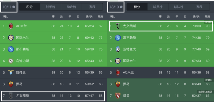 八连冠的旅程中,无论是孔蒂还是阿莱格里,无论是球队在进攻为王年还是防守制胜年,一个赛季下来,场均净胜球不刷到1.3个,简直是一种耻辱般的存在(17/18赛季这个数值甚至来到了场均1.5个)。同样有趣是,巨大优势夺冠的上赛季,这个数据恰好是八连冠以来的最低(1个)。