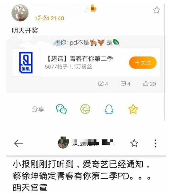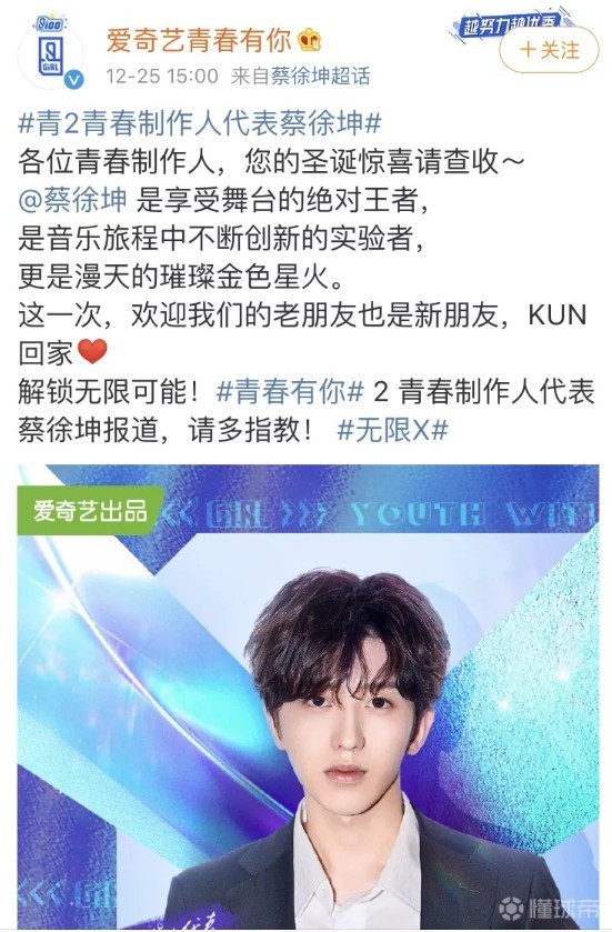 ikun警告《青春有你2》蔡徐坤强势加盟并担任导师!