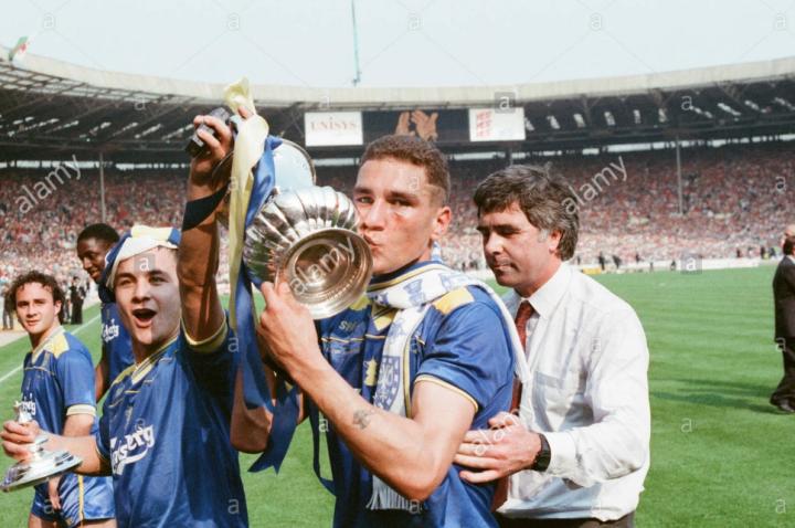 不过他的运气不错,1986年,当年的英甲升班马温布尔登俱乐部主教练戴夫·巴塞特发现了维尼琼斯这个奇才,这位在球场上总是拼命怼的大个子,非常适合当年英足总被处罚排名第一的温布尔登。在这里先科普一下温布尔登俱乐部,它的所在地大家都知道,伦敦西南郊区,著名的温网举办地。温布尔登俱乐部诞生于1889年,最早是由一个小学的学生组成的足球俱乐部,没想到在100年之后成为了全世界踢球最粗野的俱乐部。至于由多粗野,在维尼琼斯到来后我们慢慢介绍,只听说他们训练有一个项目是要球员拖汽车向前。