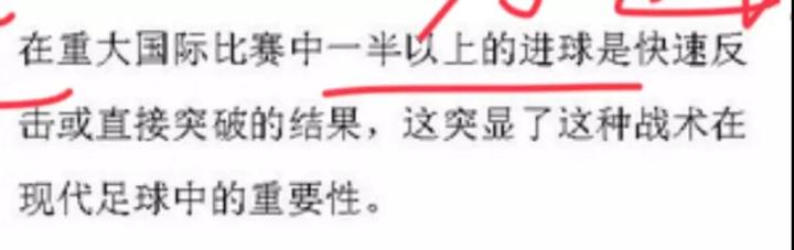 什么才是重要的?我们需要在相同的进攻次数之下,转换出更多的射门机会。这也是为什么现代足球特别强调,由守转攻的那一下传球。这个传球是很容易将进攻机会转换成射门机会,进而成为得分机会。在对方防守立足未稳之时,1打1、1打2、或者3打3、3打4的反击,相比于10打11、8打9,进攻机会转换射门的概率显然要大的多得多。国际足联《青少年足球》一书也是反复的强调由守转攻的第一下或第二下传球的质量,并且给出了数据:重大国际比赛中一半以上的进球是快速反击或直接突破的结果。[1]