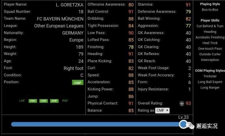 当然,更细的还需要结合球员技能,球员风格以及球队整体阵容阵型等进行详细考虑,在这里由于本篇是能力相关就不多叙述。
