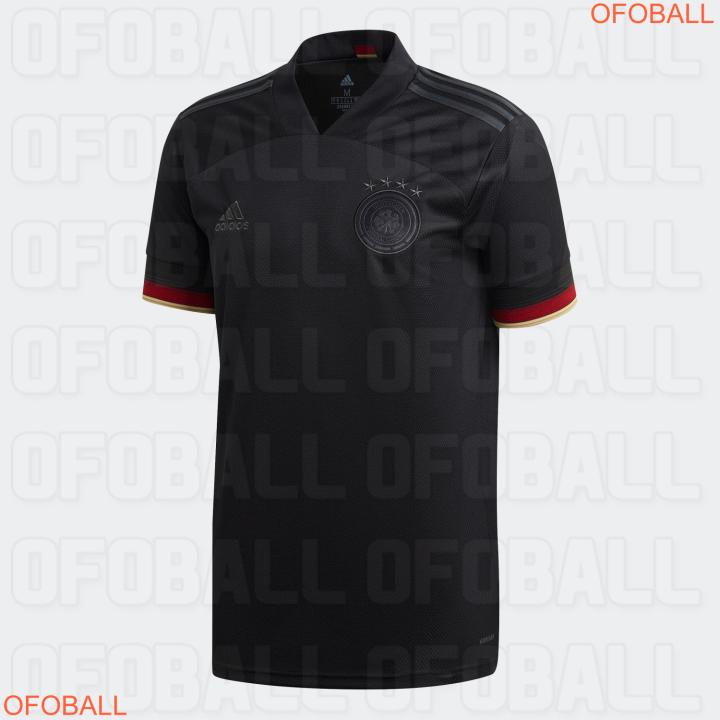 日耳曼战车德国队的新款球衣整体为白色,同时采用了横条纹设计,而在两侧袖口处增加了红色、黑色、黄色的国旗搭配,整件球衣线条感十足。而客场球衣则是选择了黑色为主体的配色,袖口处同样增加了德国国旗元素。