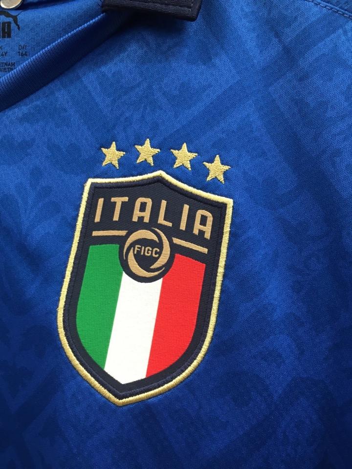 意大利队新款球衣依旧沿用了传统的蓝色配色,整件球衣灵感来自文艺复兴时期的建筑风格,同时袖口处还搭配了绿色、白色、红色意大利国旗。