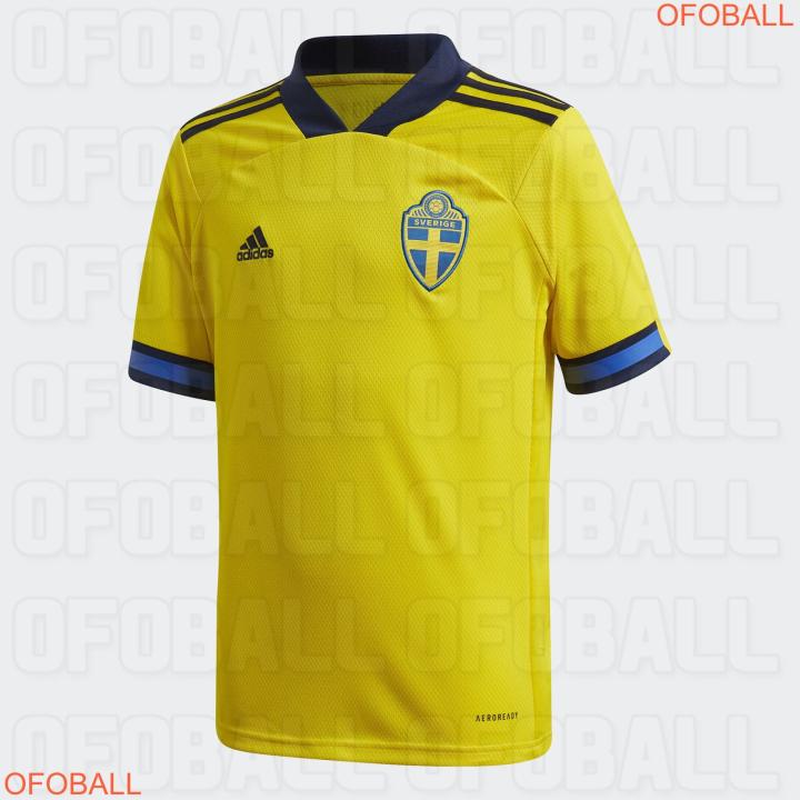 瑞典队的新款球衣依旧以黄色为主色调,整件球衣设计既简洁又简约,袖口处的蓝色条纹完美的与瑞典国旗衔接。而瑞典的客场球衣同样为简约风格,球衣由深蓝色与黄色条纹所构成。