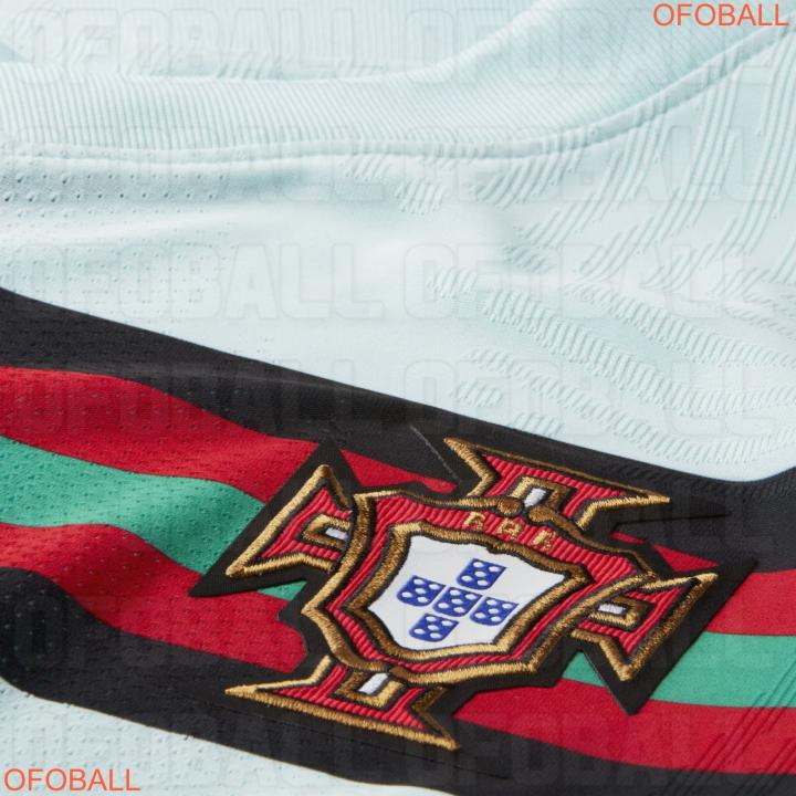 上届欧洲杯冠军葡萄牙队的新款球衣采用了复古的暗红配色,而在球衣两侧则是由绿色、黑色、橙色的锯齿条纹构成。而葡萄牙队的客场球衣则是沿用上届欧洲杯的蓝绿配色,不过在新款球衣胸前增加了黑色、绿色、红色、组成的条纹装饰。