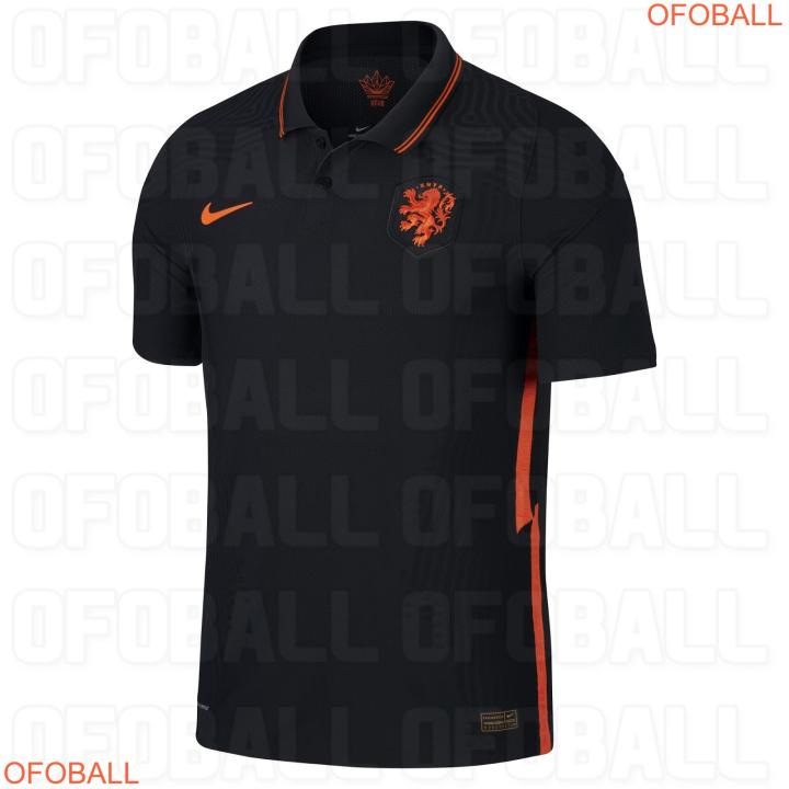本届欧洲杯夺冠大热门荷兰队主场球衣继续采用传统的橙色,在设计上新款球衣选择向1988年夺冠的荷兰队致敬,无论是配色还是细节都相当一致,值得一提的是胸前的雄狮头像为此款球衣增色不少。而客场球衣则选用了黑+橙配色。