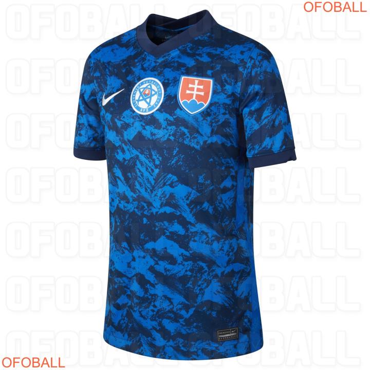 率先公布的斯洛伐克客场球衣以深蓝色为主色条,同时整件球衣以迷彩风格为主,现代感十足。