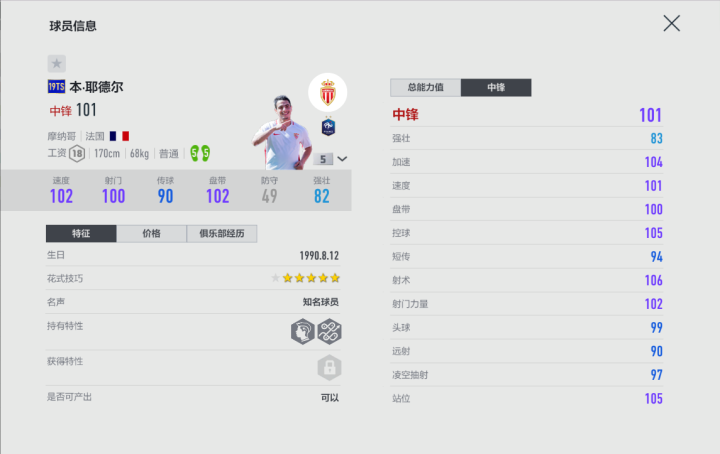 没有豪门经历和过硬的荣誉的确影响了他的知名度,此人在加盟摩纳哥之前还差点加盟了北京国安——据说是球员本人最后一秒反悔了。虽然是个法国前锋,可惜支点有吉鲁,组织有格列兹曼,速度型还有马夏尔和姆巴佩,在国家队本·耶德尔实在是上不了场。虽然塞维利亚曾经一度垄断了欧联杯,不过那是14/15/16三年的事儿,本·耶德尔来得太晚,没能赶上。但是他的实力确实还是不错的,法国套的小伙伴们也可以试试。