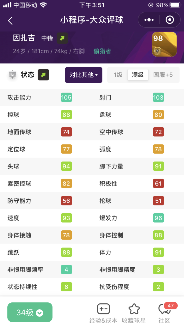 即将登录实况国服的超级皮波只给了金球很有槽点,但满级的进攻数据还是非常亮眼:天花板的跑位射门、不错的速度、稀烂的传球,完美诠释了和边裁较劲的9号,再加上偷猎者风格用脚猜都知道使用率一定会很高。