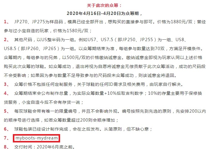 所以小宝现在向国内的足球鞋爱好者发起了众筹,众筹细节如下,这样的众筹你愿意参与么?
