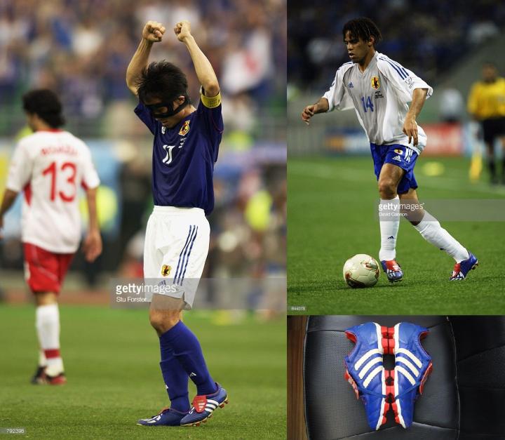 值得一提的是2002年世界杯,adidas为日本队球员专门发布了武士蓝色的猎鹰6代mania,当时日本队长宫本恒靖和规划球员三都主都使用的这款鞋,这个配色的量产也及其稀少,被圈内称为妖蓝配色。近期这款鞋刚刚被adidas进行了复刻。