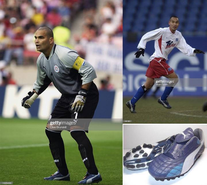 2002年世界杯上,还有一款蓝色的日本产puma足球鞋,那就是蹴道的日产版本,由当时的巴拉圭队长奇拉维特使用,其实当时日本国脚高原直泰也穿的这款鞋,但是由于伤病他没有参加世界杯,反倒是日本国门酋崎正刚也使用了这款鞋。