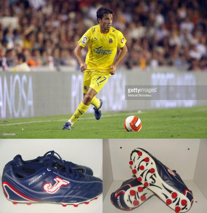 西班牙品牌joma也有蓝色球鞋,不过应该是在比较后期,当时在欧冠异军突起的比利亚雷亚尔队中的边后卫哈维文塔就是使用的蓝色joma球鞋,但是时间应该是在06-07赛季。