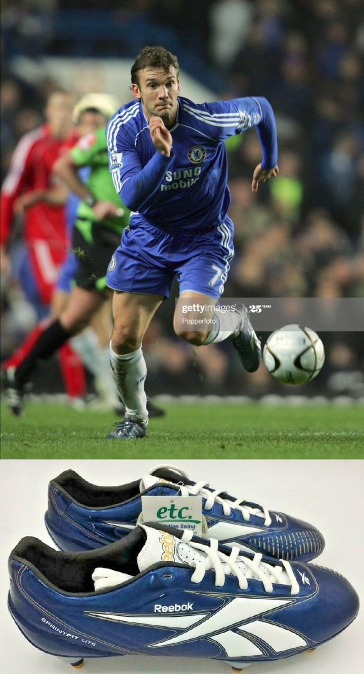 reebok又一次姗姗来迟,第一款蓝色球鞋又是被adidas收购后的2007年发布,这款鞋是深蓝色的sprintfit,由当时效力于切尔西的乌克兰核弹头舍瓦使用。不过这款鞋和切尔西的球衣的颜色有不是很和谐。