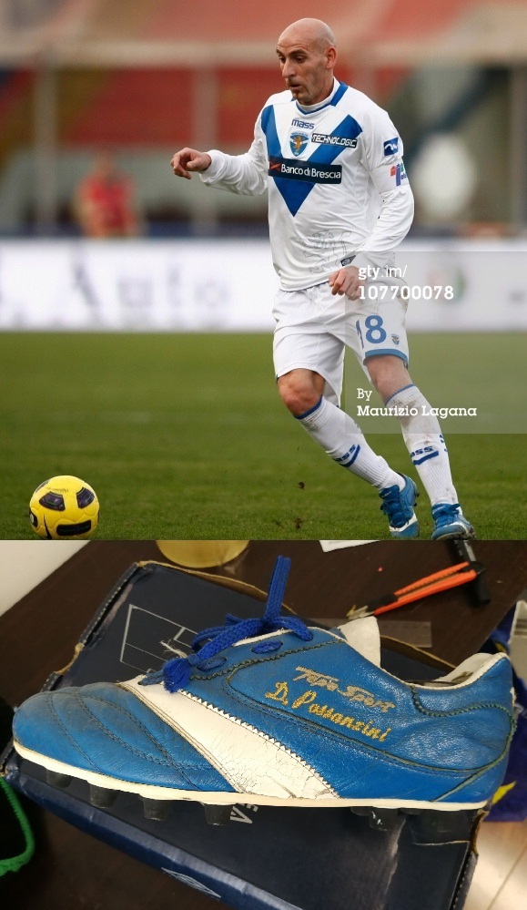 上次曾经介绍过意大利手工品牌tepa sport,当时布雷西亚的前锋波萨奇尼使用的就是蓝色的tepa足球鞋,这款鞋正好也有图片,就和大家分享一下,非常明显的定制,主要就是搭配布雷西亚的球衣。