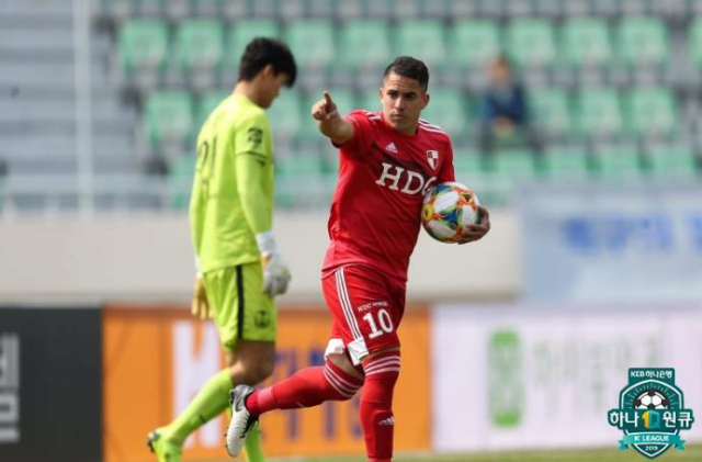 除了李承琪外,还有一名球员在逆境的比赛中上演了帽子戏法。只不过这一次是点球!2019年4月5日,19赛季K2联赛第4轮釜山IPark和富川FC1995的比赛中,釜山的巴西外援罗慕罗在球队半场0-1落后的情况下,在下半场接连利用点球得分。球队2度落后,他两度用点球扳平。终场前,富川再次犯错送点,罗慕罗顶住压力将点球罚中,3-2,釜山完成逆转!这也是K联赛历史上第一次“点球帽子戏法”出现。无论是李承琪还是罗慕罗,他们都凭借“帽子戏法”拯救了球队的命运。