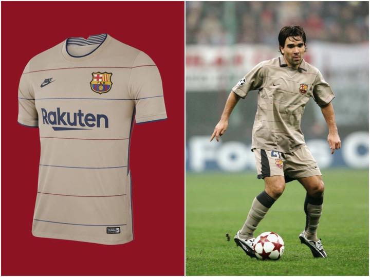 客场概念球衣则从巴萨历史上最具话题性以及大胆设计的那件1999/01赛季所穿着的客场球衣身上汲取灵感,里瓦尔多、瓜迪奥拉以及哈维等巴萨传奇人物都穿着过那件闪闪发亮的银色客场球衣。相比之下,这件客场球衣采用了稍显低调的银灰色而非当年的银色。