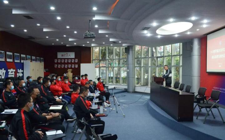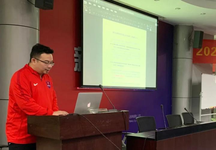 “新时期的足球,不光是技战术、竞技能力的较量,更是技术水平的比拼。”在主教练感性的分享后,球队一线队技术分析师胡明航就视频分析、足球数据等内容同教练员进行讲解。而技术部部长王峰伟则进一步介绍了“Footballaim”数据管理系统、“Epts”运动评估系统,集中展示了俱乐部近年在技术分析和数据管理方面的投入,也体现了俱乐部朝着更科学、更专业方向发展的决心。