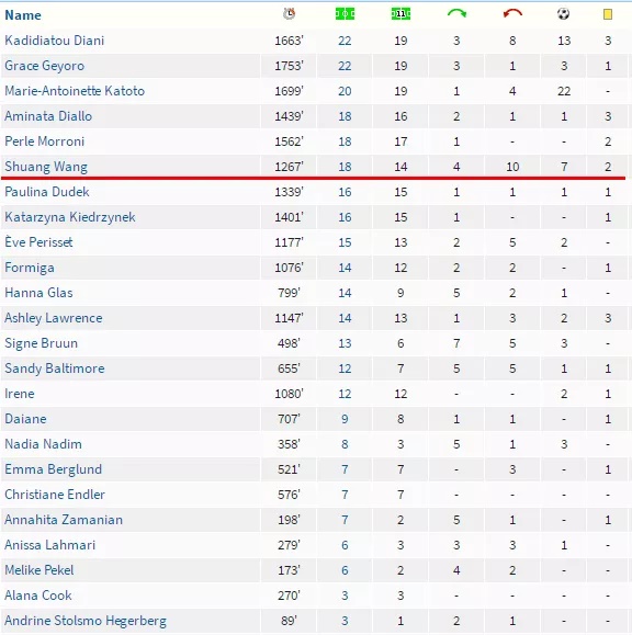传奇退役,迎来的是新人的加盟,前面一长串历史科普之后,终于讲到大家都关心的地方了。王霜,神秘的东方力量加盟巴黎。王霜的故事想必大家早就非常了解了,而她加盟的这支刚刚两次杀入欧冠决赛的大巴黎是什么水平大家也都清楚了。但是唯一不清楚的,可能就是王霜在这支球队里的发挥到底怎么样呢?接下来是一些数据: