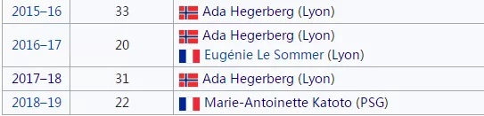 大家还记得当时球迷集体吐槽的几位王霜的队友吗?或许大家指的应该是卡托托迪亚妮吧。其实卡托托和迪亚妮也非等闲之辈。就比如98年11月出生的卡托托,已经为巴黎打入了90球,仅次于Marie-Laure Delie的131球排名队史射手榜第二。要知道,卡托托今年才21岁,而且如今的巴黎已经不是那个留不住天才的巴黎了,假如卡托托长期效力于巴黎,破纪录不是问题,甚至有可能把记录刷新到一个难以想象的新高度。在王霜效力巴黎的赛季,那个“不爱传球”的卡托托联赛出场20次打进22球,问鼎联赛金靴,也终结了里昂的赫格贝里连续三年夺得金靴的纪录
