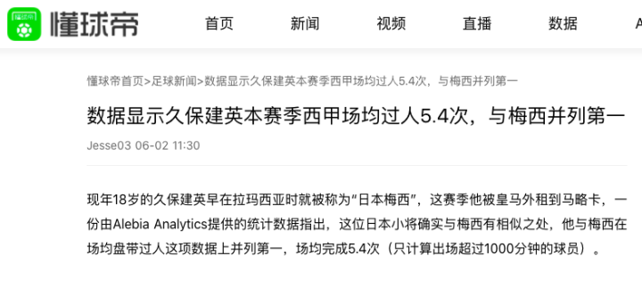 同时也看到下面有球迷说为什么懂球帝给的成功过人梅西是118次,久保只有34次,难道是哪个环节出现了问题吗?