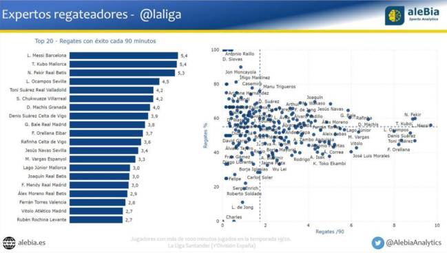 而根据这个标准看下去久保同学本赛季的Successful Dribbles是90+ 梅老板Successful Dribbles是120+ 加上久保同学出场时间少,所以场均Successful Dribbles相同其实是真实存在的。
