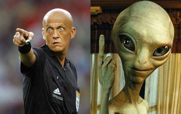 著名的意大利光头裁判科利纳虽然不是足球运动员,但却具有不输于顶级球星的明星效应。真要说找出足坛上最像传统意义上的外星人的一位,那恐怕非他莫属了。标志性的光头,水泡一般的眼睛,枯槁的手指,让从《ET》到《疯狂的外星人》等无数影视作品中的外星人都纷纷与科利纳撞脸。我们就拿2011年的科幻电影《外星人保罗》举例说明吧,毕竟如果让全球网民选出一个默认形象的外星人,那估计差不多就是这样的。
