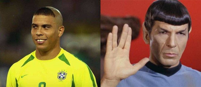 《星际迷航》系列中的瓦肯人来自瓦肯星,是科幻史上经典的外星人形象之一,具有比地球人更强的力量和更敏锐的感知力。他们标志性的齐头帘也成为了一个标志性的视角符号,这和2002世界杯上的罗纳尔多的发型颇有相似之处,也许这是肥罗在向我们暗示,自己的“外星人”绰号绝非浪得虚名。不过瓦肯人以信仰严谨的逻辑和推理、去除情感的干扰闻名,这似乎又跟绯闻不断的肥罗差得有点远,也有可能是因为掉进了地球这个大染缸的原因吧!