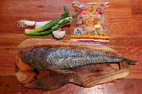 沙尖鱼、普宁豆酱、葱段、蒜片。