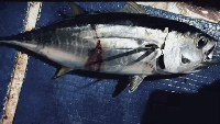 “金枪鱼腮部的肌肉退化了,所以一生都不能停止游动,需要让水流穿过腮部进行呼吸。它属于攻击性鱼类,所以只有活饵或者会发光的假饵才能吸引它的注意。”