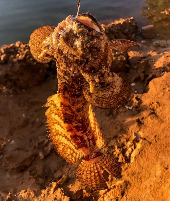 #西澳拟蟾鱼,前面长得像蟾蜍,头下面有两只犄角。