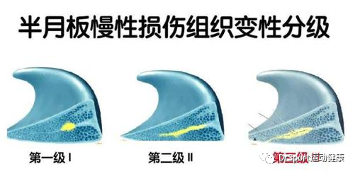 Ⅱ级:表现为水平的、线形的半月板内高信号,可延伸至半月板的关节囊缘,但未达半月板的关节面缘。Ⅱ级信号改变是I级信号改变的继续;