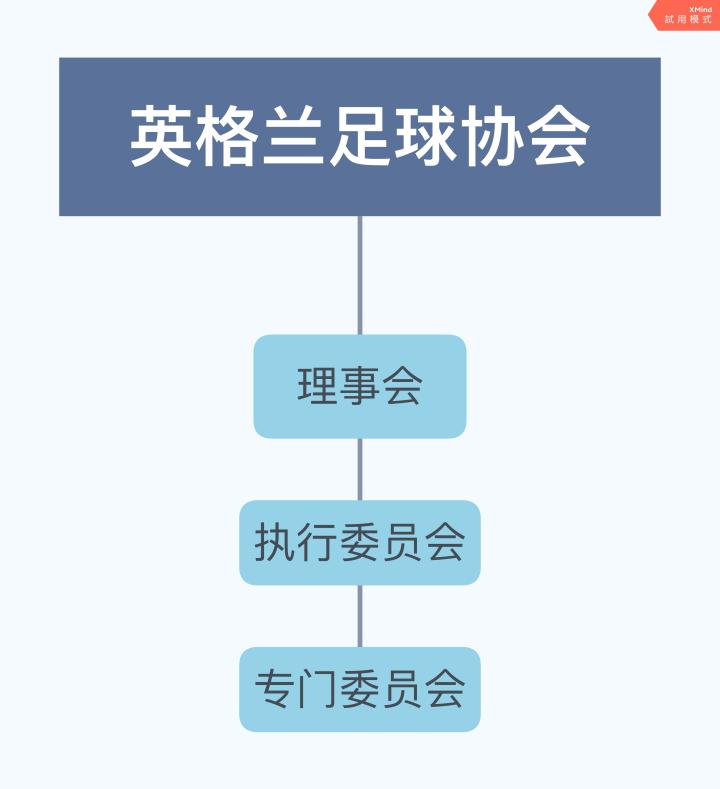 英格兰足球协会选出由17人组成的执行委员会,下设26个专门委员会负责不同类型的事务,委员会由执委会任命,形成了从“理事会-执委会-专门委员会”的管理体系。理事会,执委会和专门委员会采用定期磋商会议制度,解决联赛中遇到的实际问题。