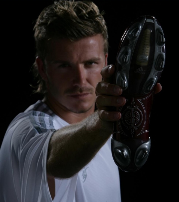 作为公众人物贝克汉姆也很配合,他表示自己穿什么材料的球鞋都不会影响自己的发挥,只要鞋子有足够的摩擦力,穿的舒适就行,当然还得有点天皇巨星战靴的个性设计。所以adidas公司在2005年11月发布猎鹰8代足球鞋的时候,给小贝推出的专属款量产也是超纤鞋面,这款鞋酒红配色,鞋底上的花纹是希腊战神阿瑞斯的长矛和盾牌,所以被国内鞋友称为战神配色。当年猎鹰8首发发布会,adidas大张旗鼓,出席的球星近30人包括郑智,只有小贝使用战神款,其他球员都是经典色或者白金色,又是一副众星捧月的场景。