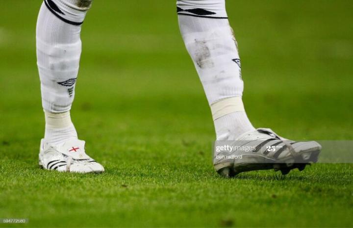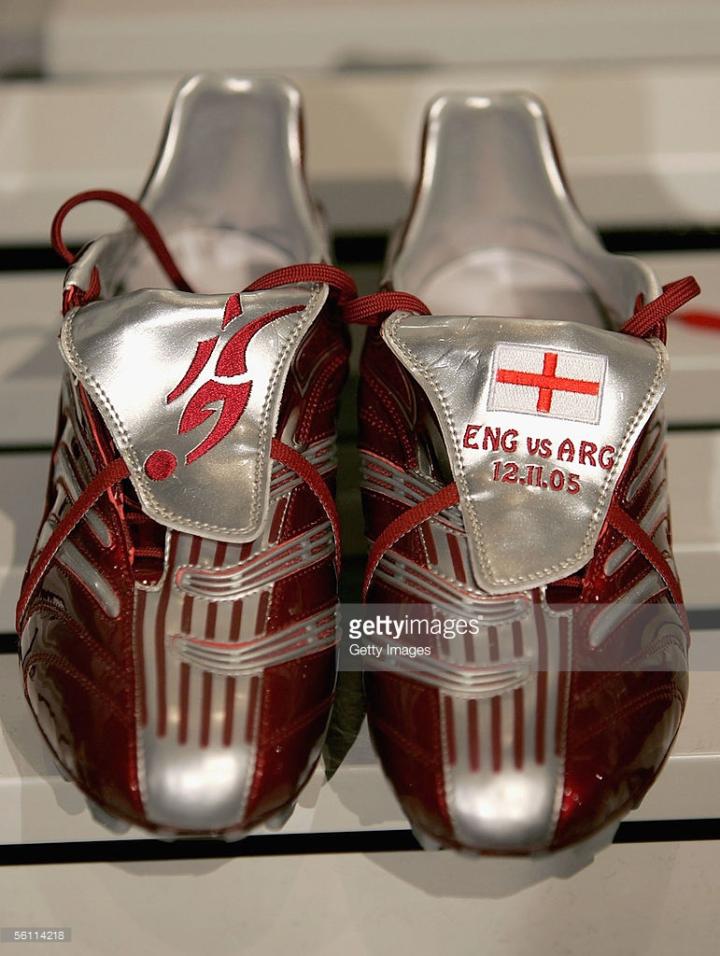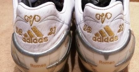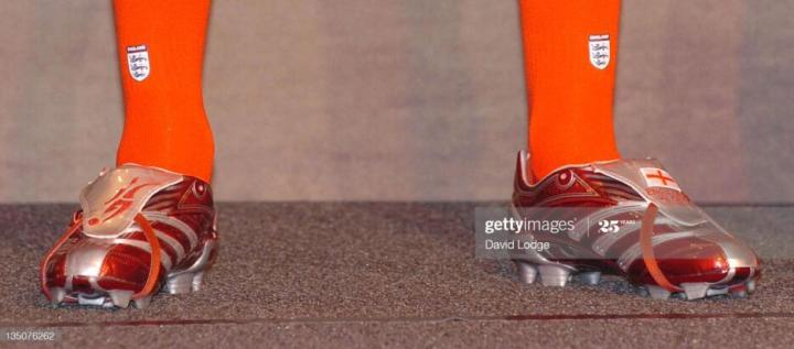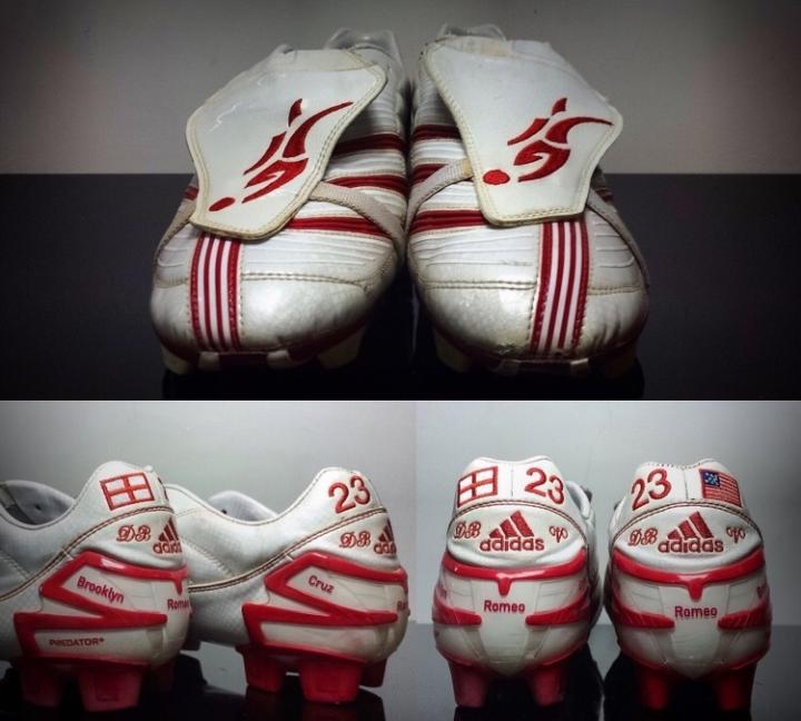 当时贝克汉姆已经有三个儿子,所以战神上的刺绣可以说密密麻麻,自己的名字,儿子的名字,号码国旗等,之后这些都成为小贝球鞋的标配。不过也是从猎鹰8开始,贝克汉姆的球鞋不再使用天足鞋垫,而是使用量产的猎鹰8鞋垫,因为猎鹰8的鞋底有天窗设计,作为头号代言人小贝并没有改变这一创新设计。